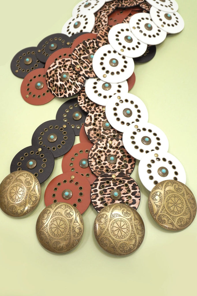 HAMMERED ROUND SHAPED FAUX LEATHER BUCKLE BELT | 40BT644