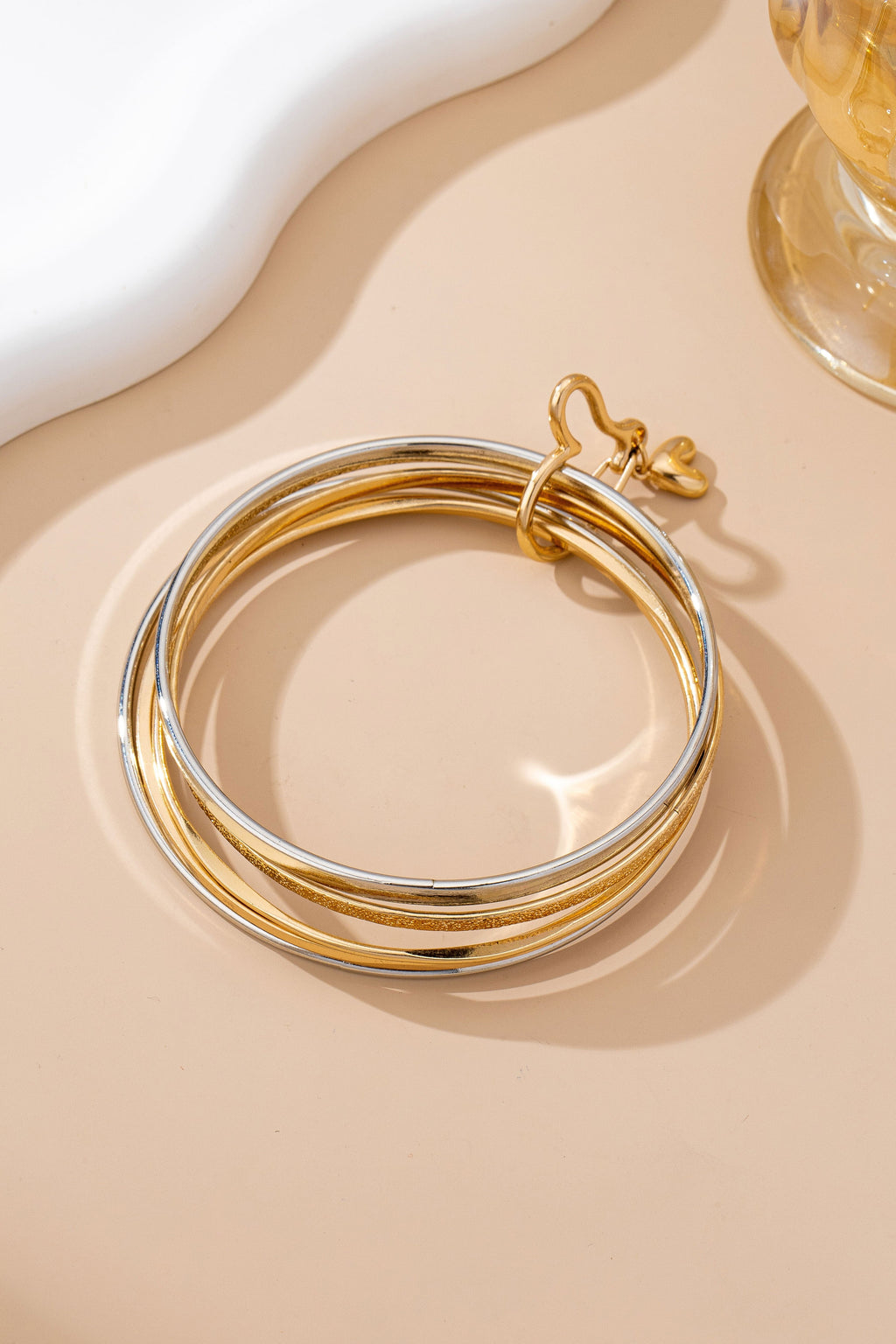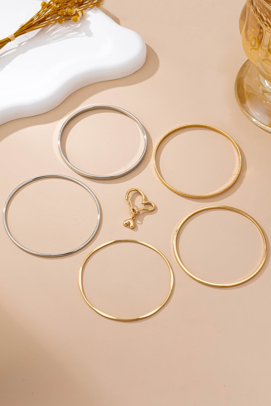Gold Silver Heart Linked Multi Bangle Set Bracelet | 80B1591