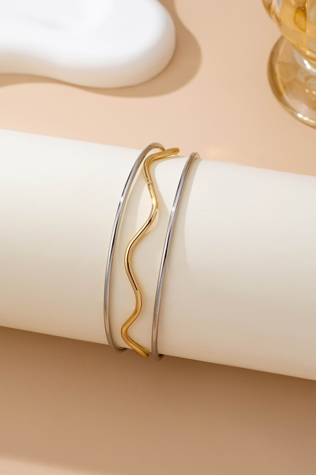 Mixed metal wavy and smooth bangle duo Bracelet | 80B1609