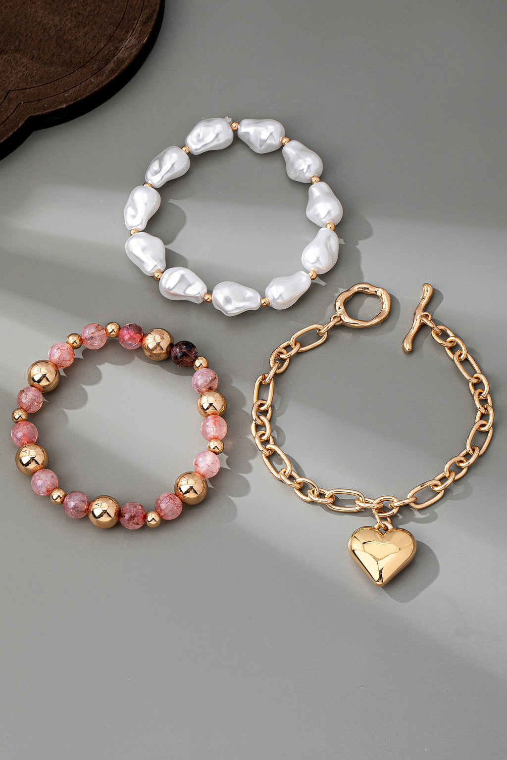 MULTI LAYER MIXED PEARL BEAD HEART CHARM BRACELET | 80B1549