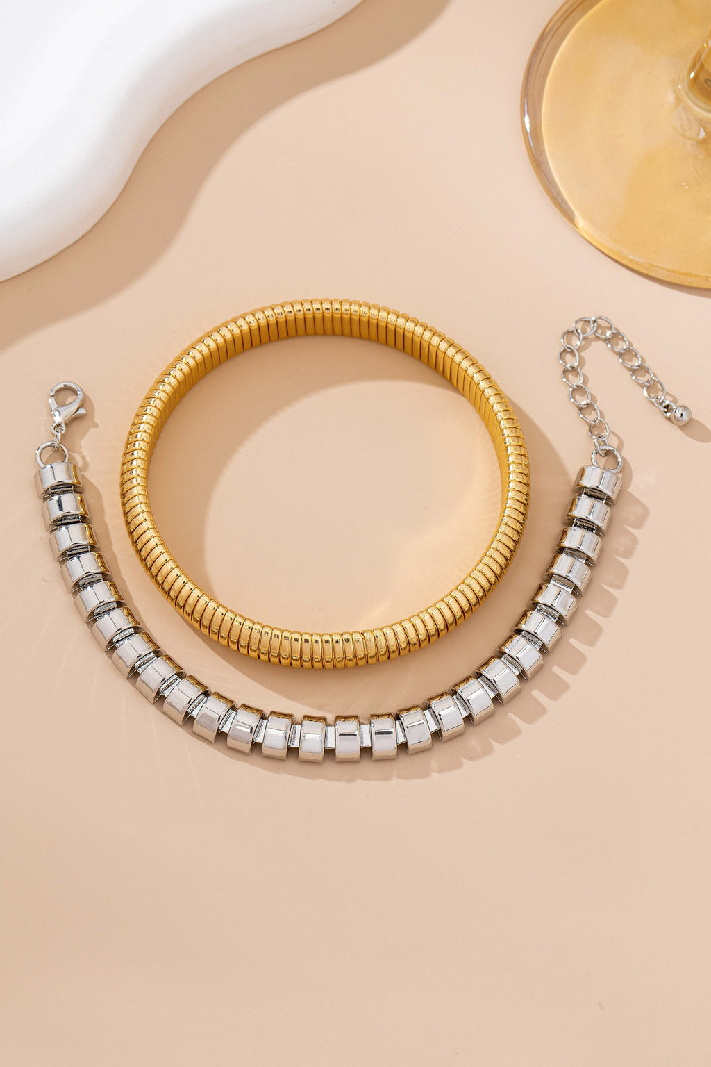 Two-Tone Mixed Chain Bangle Set | 80B1686
