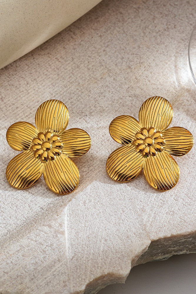Real Gold Dipped Ribbed Flower Stud Earrings, these earrings feature adorable ribbed floral statement earrings. Designs meticulously crafted from high-quality stainless steel with a radiant 18K gold finish. Their tarnish-free, hypoallergenic, and fade-resistant.