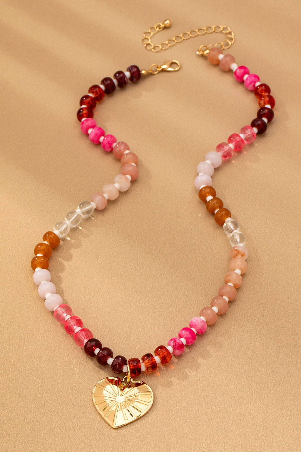 MULTI BEADED CHAIN HEART CHARM NECKLACE | 80N92630
