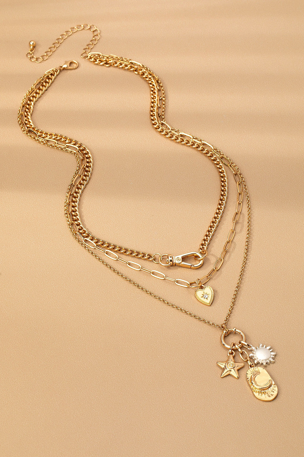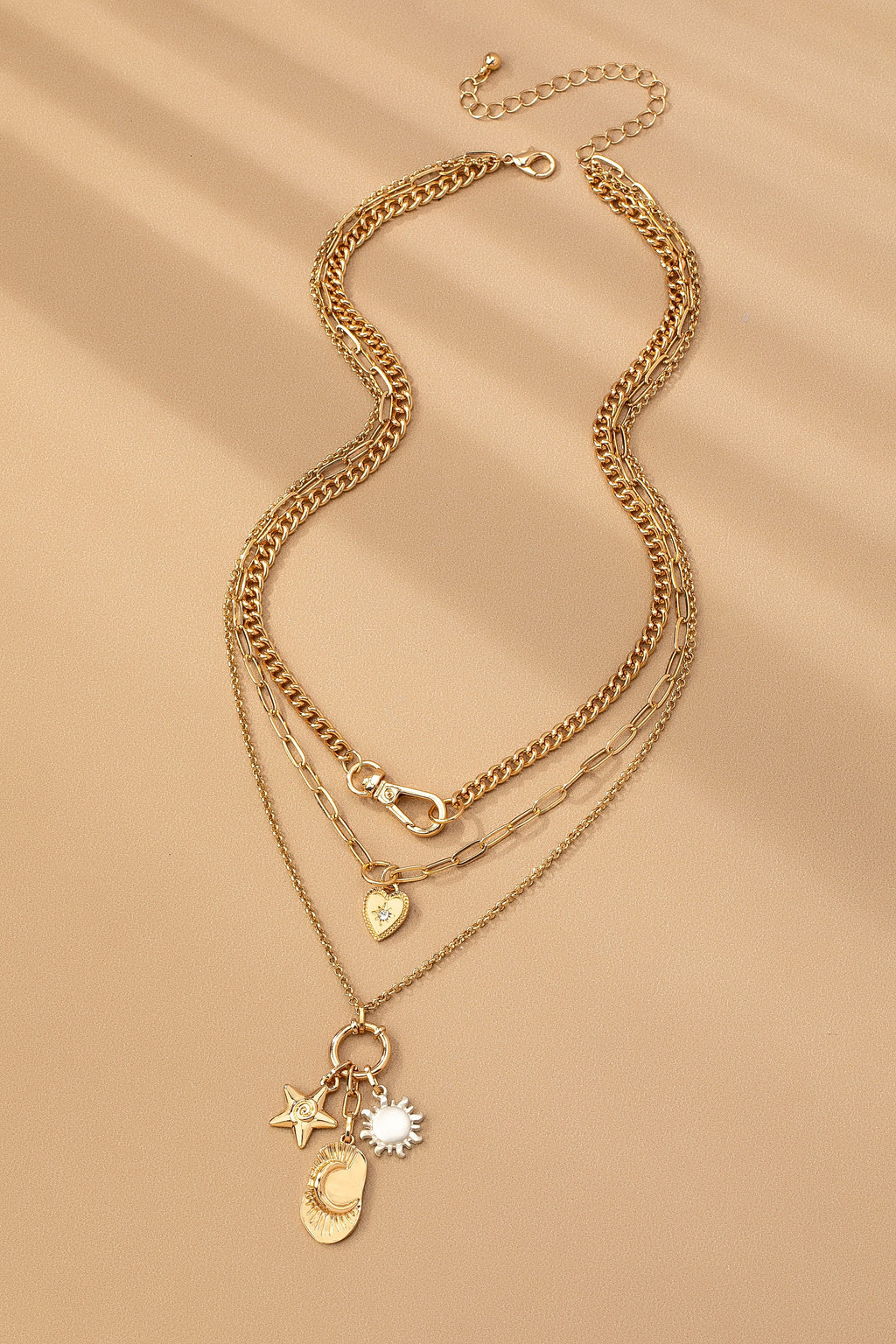 MULTI LAYER CELESTIAL STAR MOON CHARM NECKLACE | 80N92439