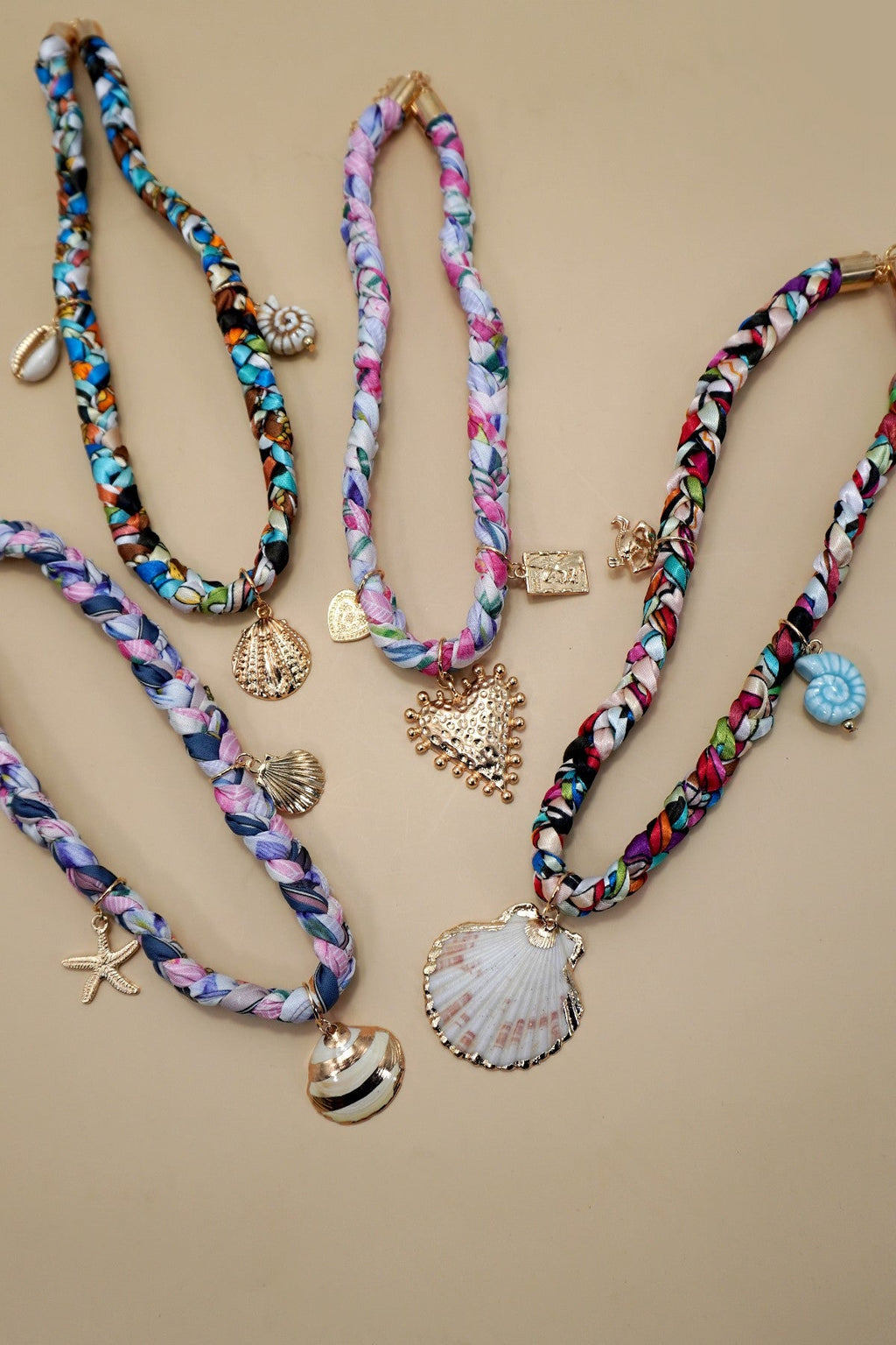 18K Stainless Steel Tarnish-Free Charm Necklace with Scarf Rope Chain with Ocean Charm. Charm Necklace, featuring 18K Stainless Steel with ocean multi charm of seashell, heart on a fashionable scarf cotton rope chain. Its tarnish-free design ensures long-lasting shine and resilience, the bracelet is hypoallergenic, waterproof, fade-resistant, and tarnish-free.
