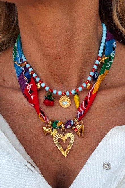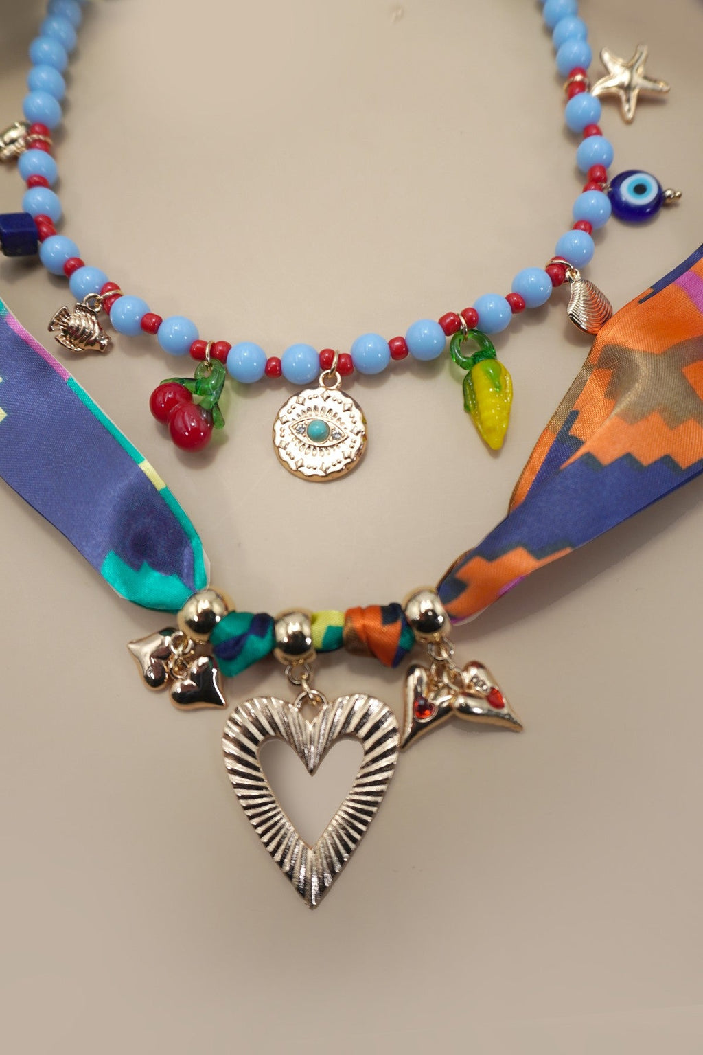 18K Stainless Steel Tarnish-Free Double Layer Charm Necklace with Scarf Rope Chain with Charms. Double Layer Charm Necklace, featuring 18K Stainless Steel with charm of heart on a fashionable scarf rope chain. Its tarnish-free design ensures long-lasting shine and resilience, the bracelet is hypoallergenic, waterproof, fade-resistant, and tarnish-free.