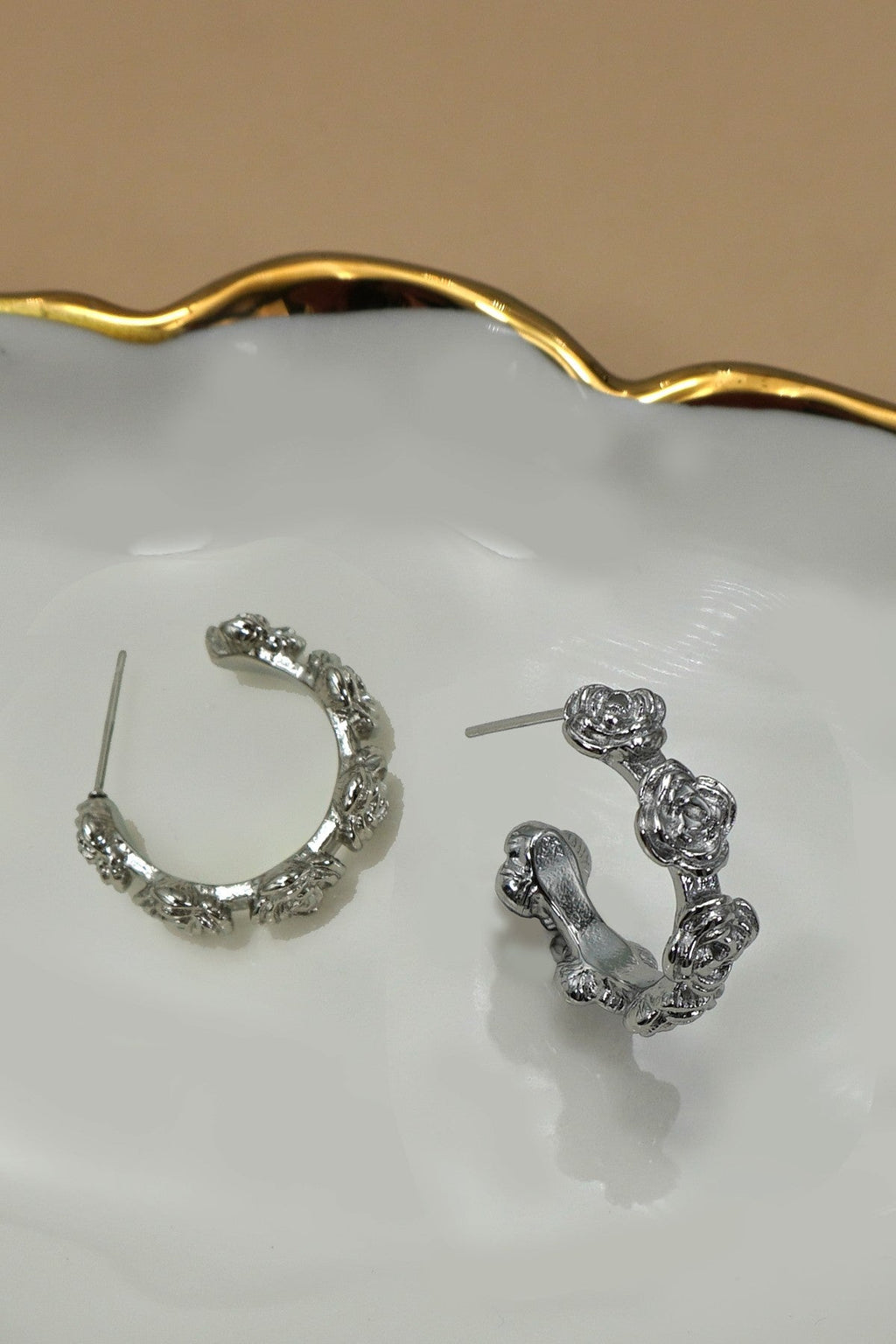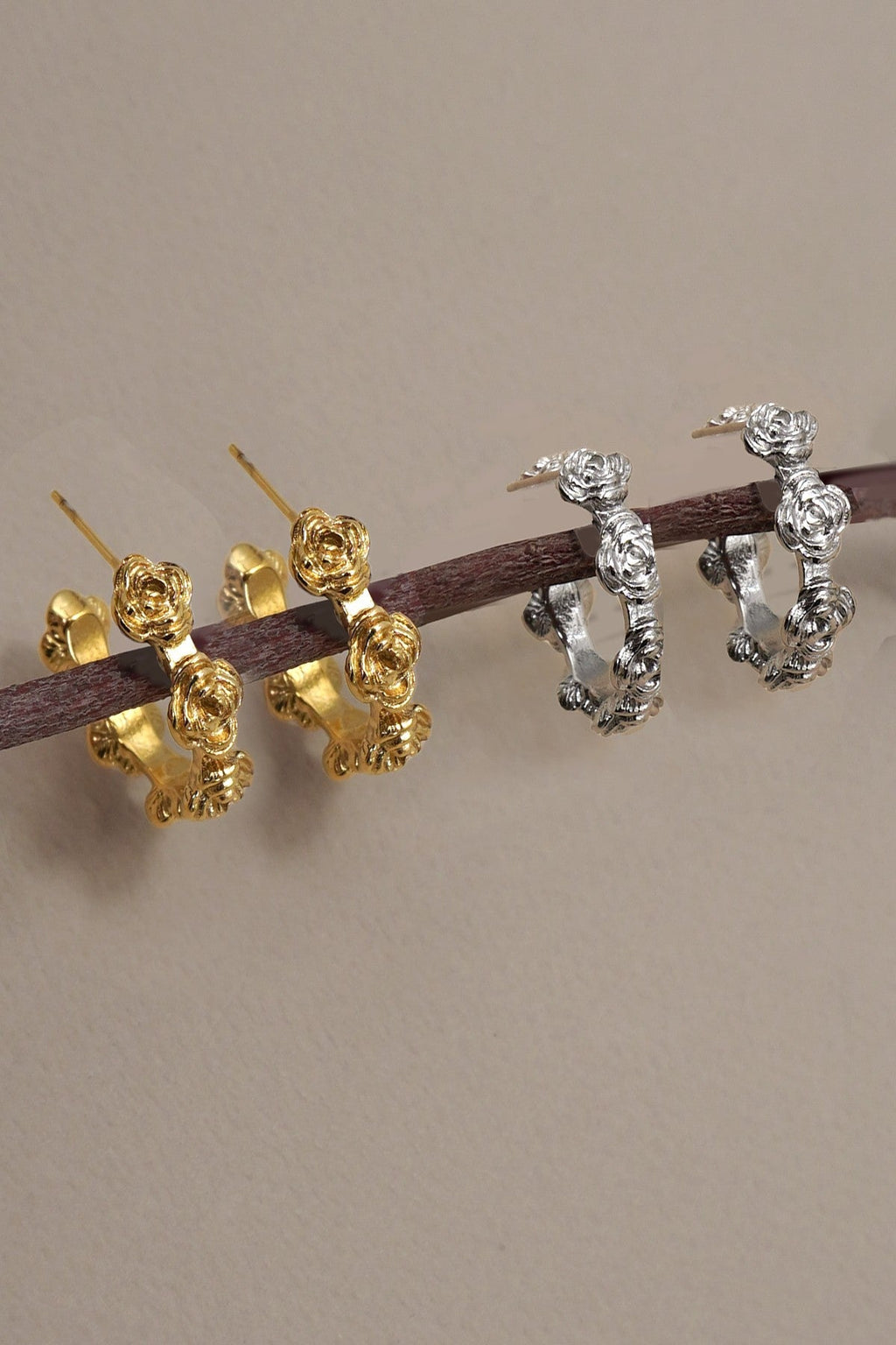 18K Stainless Steel Waterproof Tarnish-Free Floral Huggie Hoop Earrings, Made from high-quality stainless steel with a luxurious 18K gold finish, these earrings feature a stunning floral texture that adds depth and dimension to your look.?