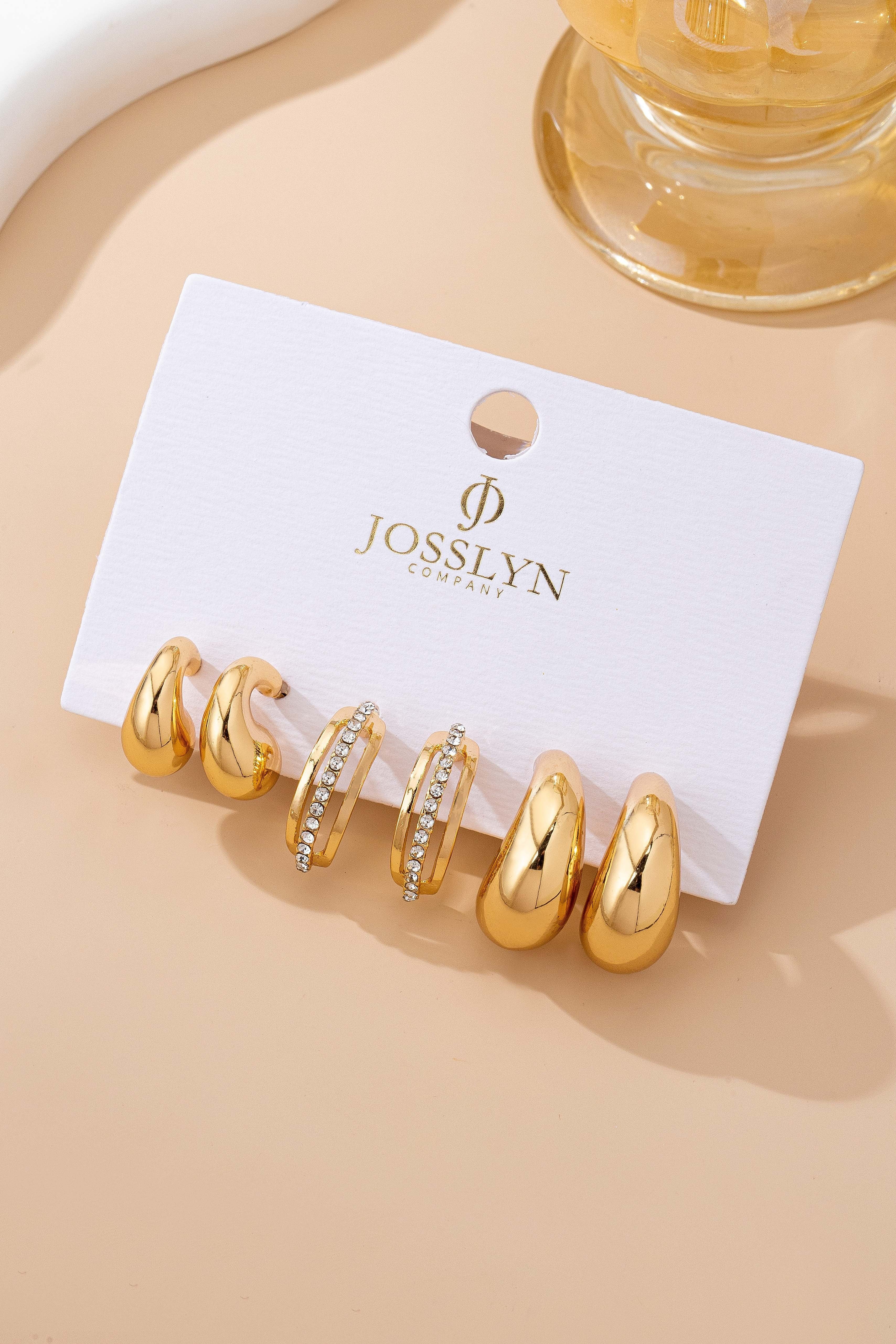 Chunky Hoop Rhinestone Trio Earring Set | 80E61673