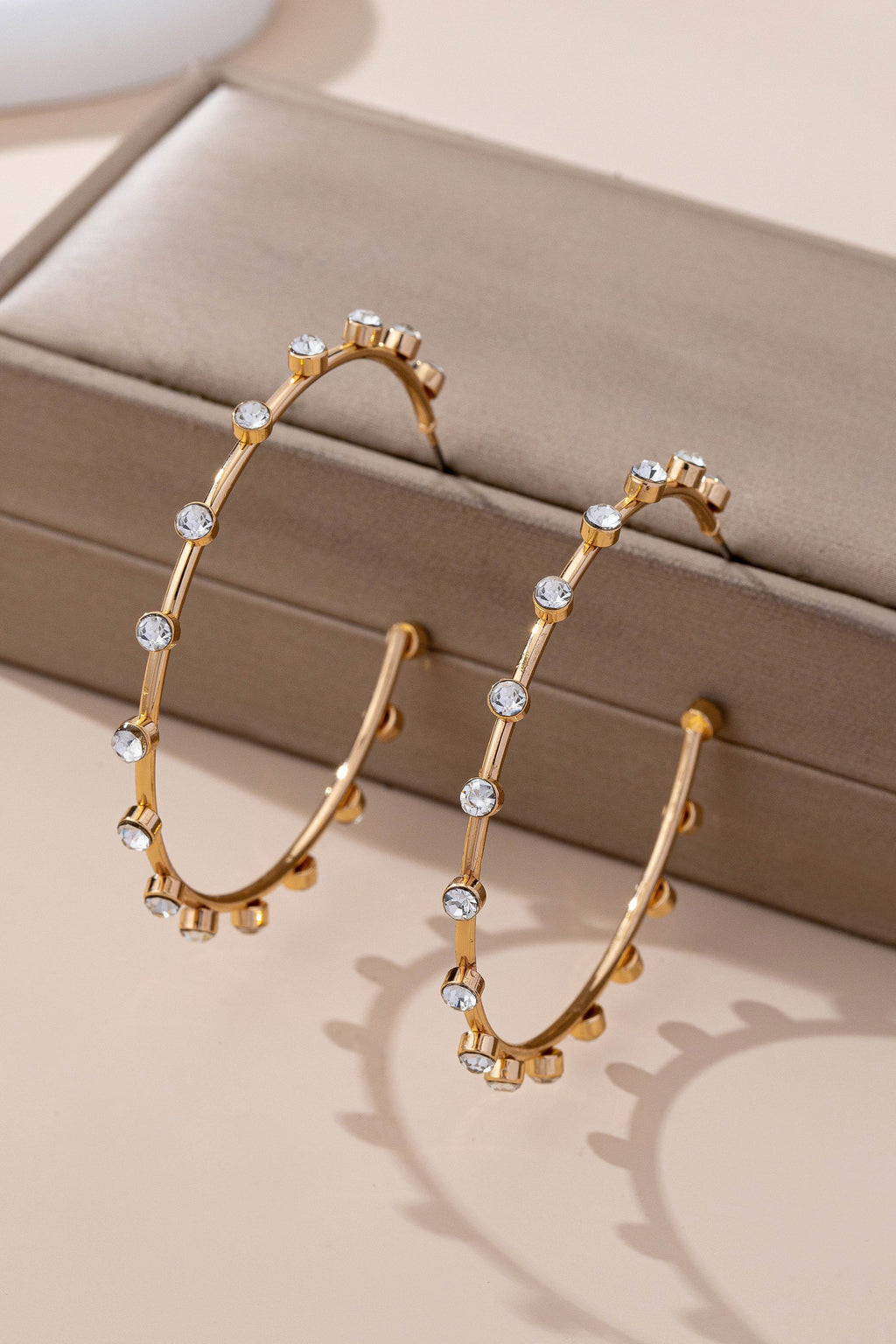 Crystal-Studded Gold Hoop Earrings | 80E61637