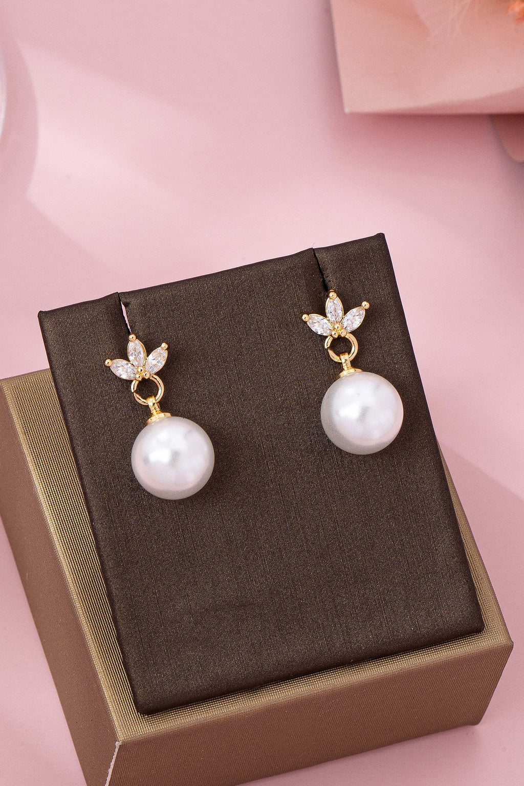 CZ Crystal Floral Pearl Drop Earrings | 80E61986