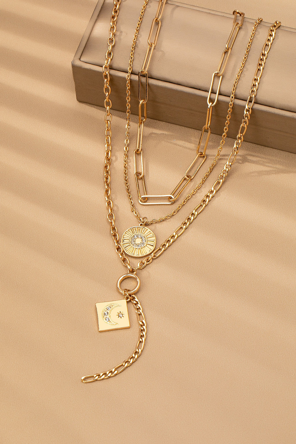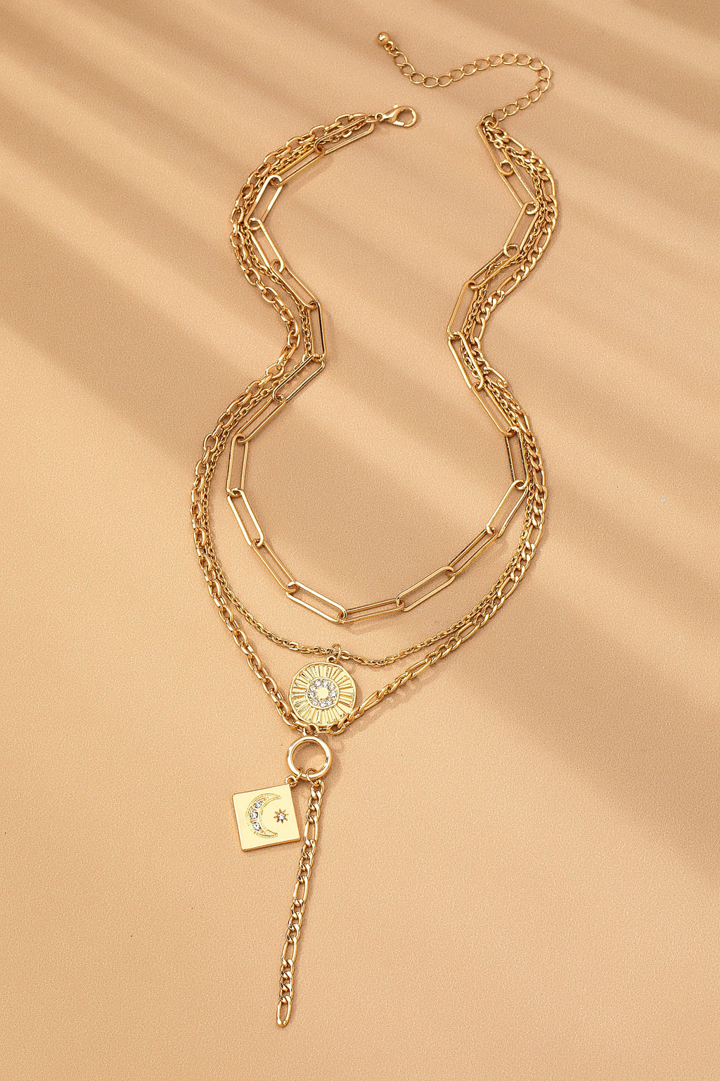 MULTI LAYER CELESTIAL MOON CHARM NECKLACE | 80N92456