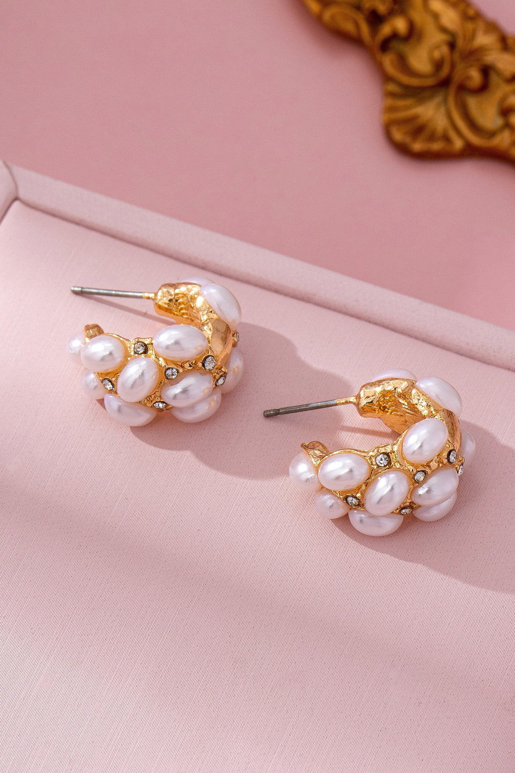 Pearl Cluster Half-Hoop Stud Earrings | 80E61733
