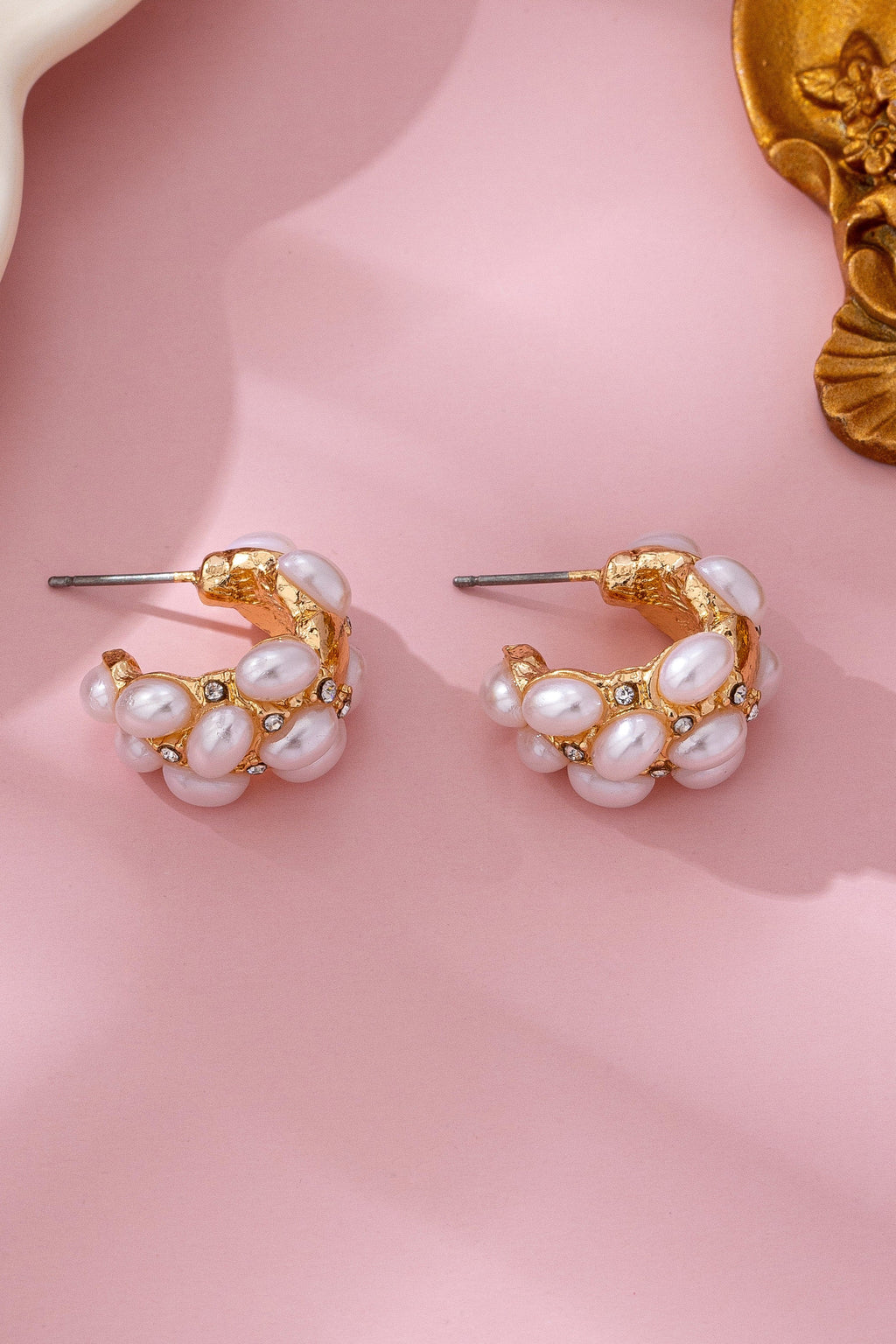 Timeless elegance meets modern luxe in these gold-tone half-hoop studs, beautifully adorned with clusters of lustrous faux pearls in varying sizes.