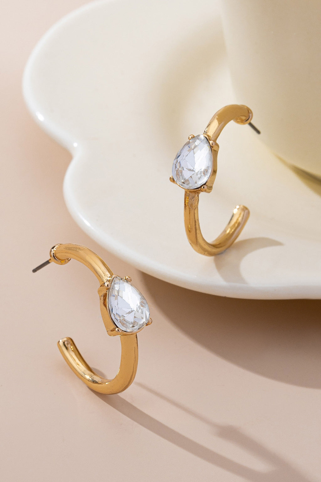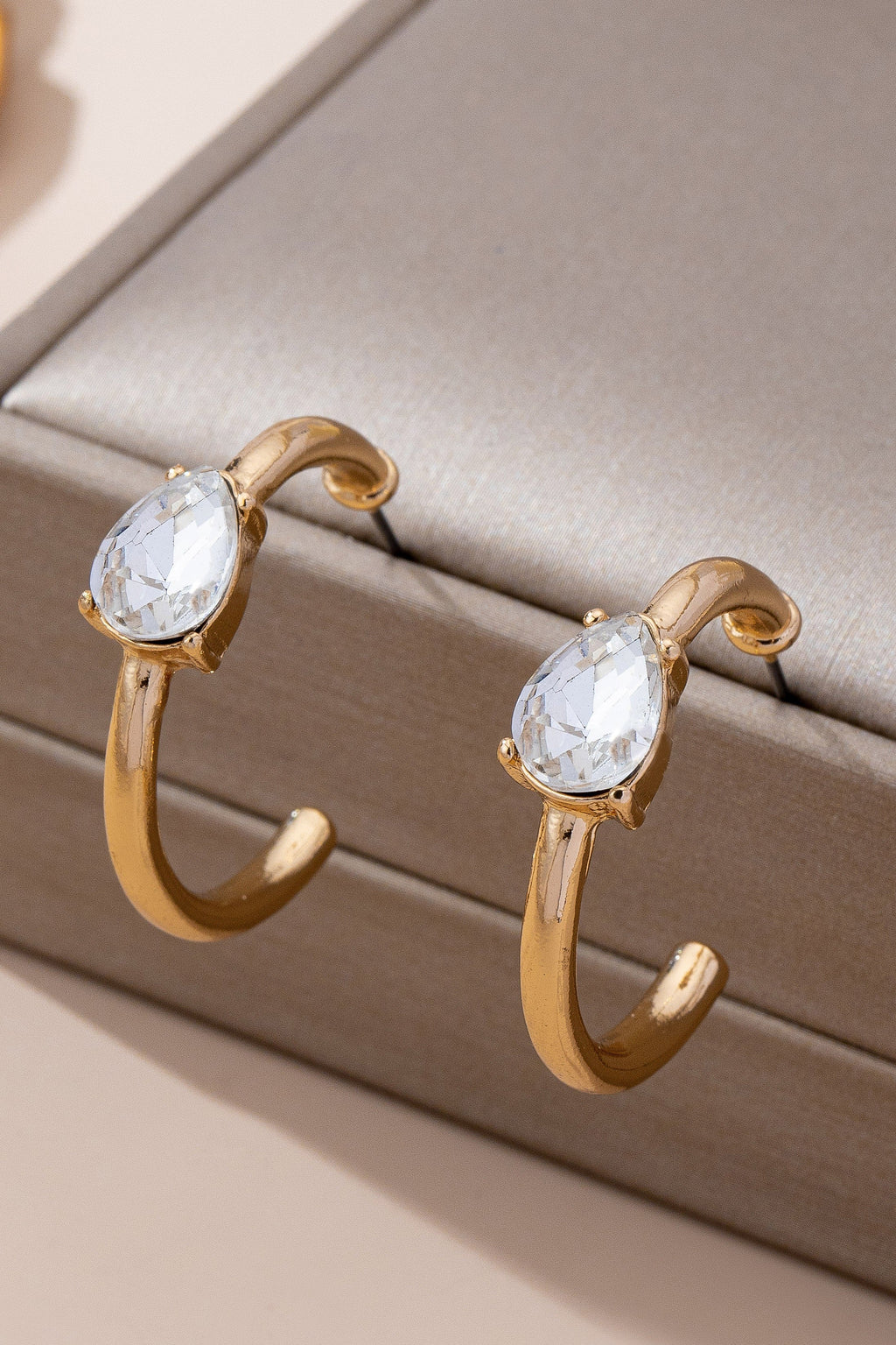 These dainty gold-tone hoops feature a single, prong-set round crystal at the front, delivering subtle sparkle with a clean, modern silhouette. Lightweight and timeless, they're perfect for everyday elegance or stacking.